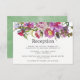 Cartes de réception de mariage floral avec des pivoines roses blush et des accents de pourpre et de vert sauge.