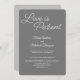 Invitation de réception de mariage élégante et tendance de couleur grise. Cette conception présente une écriture moderne pour les mots "L'amour est patient" en typographie. Personnalisez cette annonce de mariage qui fait également office d'invitation de réception de mariage avec les noms des mariés et tous les détails de la fête sur l'échange de vœux et le cortège nuptial. Cette conception de mise en page chic et élégante est facile à personnaliser.