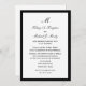 Ces invitations de réception de mariage après élégantes et abordables présentent un fond blanc pour vos détails de mariage qui apparaîtront en noir. La conception est améliorée par une petite bordure noire autour du bord. Cette invitation de réception de mariage après est simple, élégante et peu coûteuse -- quelle excellente combinaison ! Copyright bargainsbyhenis