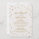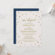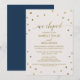 Cette carte d'invitation de réception de mariage après fugue aux pois dorés est parfaite pour une fête de mariage élégante. Le design simple présente des confettis dorés chic sur un fond de champagne crémeux avec une belle calligraphie en faux feuillet doré et un dos en bleu marine. Les cartes RSVP sont vendues séparément.