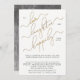 Cette belle invitation de réception de mariage moderne noir, blanc et or "Happily Ever After" présente un faux script de calligraphie à feuille d'or indiquant "To Love, Laughter, and Happily Ever After" comme élément de design principal. Le design est personnalisé avec votre annonce de mariage ci-dessous, et suivi des détails de votre invitation à la réception de mariage ci-dessous. Le design est magnifiquement complété par la police moderne sans empattement en majuscules noires, sur le fond blanc croquant, annonçant la date et le lieu de la réception. Le dos de l'invitation présente une oeuvre d'art aquarelle moderne noir et blanc, pour compléter le design sophistiqué.
