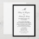 Ces invitations de réception de mariage après mariage élégantes et abordables présentent un fond blanc pour vos détails de mariage qui apparaîtront en noir. La conception est améliorée par une petite bordure noire autour du bord. Cette invitation de réception de mariage après mariage est simple, élégante et peu coûteuse -- quelle excellente combinaison ! Copyright bargainsbyhenis