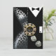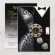 Un couple chic art déco portant une tenue de soirée - elle est dans une robe argentée imprimé léopard décolletée et il est élégant dans un smoking noir. L'élément central est un jeton de casino qui contient du texte personnalisé et des dés argentés qui tombent. Que vous vous mariiez à Las Vegas ou que vous restiez dans votre ville natale et organisiez un événement sur le thème du casino, cette invitation polyvalente et tendance est parfaite pour toute occasion spéciale - fêtes de retraite, anniversaires marquants, cocktails et dîners, dîners de répétition, réceptions de mariage, anniversaires de mariage, événements semi-formels et formels ou soirées de fêtes. Facile à personnaliser, utilisez le bouton "Personnaliser" ci-dessus pour ajouter votre propre texte. Autocollants assortis disponibles. Pour les questions ou les demandes spéciales, veuillez contacter le concepteur à cheryl@cheryldanielsart.com. Si cette invitation n'est pas exactement ce que vous cherchez, tous mes produits peuvent être conçus sur mesure pour répondre à vos besoins