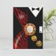Un couple chic art déco portant une tenue de soirée - elle est dans une robe rouge à découpe basse zèbre et il est chic dans un smoking noir. L'élément central est un jeton de casino qui contient du texte personnalisé et des dés dorés qui tombent. Que vous vous mariiez à Las Vegas ou que vous restiez dans votre ville natale et organisiez un événement sur le thème du casino, cette invitation polyvalente et tendance est parfaite pour toute occasion spéciale - fêtes de retraite, anniversaires marquants, cocktails et dîners, dîners de répétition, réceptions de mariage, anniversaires, événements semi-formels et formels ou soirées de fêtes. Facile à personnaliser, utilisez le bouton "Personnalisez-le" ci-dessus pour ajouter votre propre texte. Autocollants assortis également disponibles. Pour les questions ou les demandes spéciales, veuillez contacter le concepteur à cheryl@cheryldanielsart.com. Si cette invitation n'est pas exactement ce que vous cherchez, tous mes produits peuvent être conçus sur mesure pour répondre à vos besoins spécifiques.