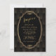 Carton d'invitation de mariage vintage Art Déco de Gatsby le Magnifique des années 20. Un design de carte inspiré des années 1920 noir et or présente une forme ovale vintage en faux feuille d'or et des ornements, un beau style d'Art Déco en arrière-plan. Utilisez l'outil de personnalisation pour ajouter vos informations. Voir également ma collection Art Déco charmante de Gatsby le Magnifique. Les années 1920 étaient une époque de prohibition, de gangsters, de fêtes clandestines, de musique jazz et de filles garçonnes.