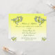 Cette charmante invitation pour une réception de mariage aux fleurs jaunes rayonne de la joie de l'occasion. L'avant est orné de bouquets de jonquilles, de narcisses et de lilas blancs. Le tout est posé sur un dégradé jaune doré ensoleillé. L'image est répétée au dos. Tout le texte peut être personnalisé pour s'adapter à votre occasion particulière.
