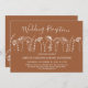 Invitation de réception de mariage aux fleurs sauvages orange brûlé et terre cuite avec un design floral linéaire simple. Thème botanique délicat avec une bordure de fleurs sauvages en ligne blanche et une typographie élégante manuscrite. Veuillez parcourir ma collection Wildflower Sketch pour les articles assortis.