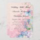 Une élégante invitation de mariage pour une réception après mariage sur le thème floral. Spécifiquement pour les couples qui se sont mariés dans une destination de voyage romantique et souhaitent célébrer avec leurs amis et leur famille une fois de retour à la maison. Le design est une illustration à l'aquarelle douce et délicate d'un arrangement floral avec de jolies fleurs sauvages roses et bleues sur un fond ressemblant à un parchemin pêche donnant à ce design un charme vintage. Des fleurs bleues ornent le bord du design tandis que les fleurs roses s'estompent en arrière-plan pour un effet doux et délicat.