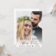 Faire-part de mariage pour annoncer un mariage intime et une réception de mariage pour informer la famille et les amis que vous vous êtes mariés lors d'une cérémonie privée, et les inviter maintenant à une réception de mariage. Le recto présente votre photo de mariage avec en surimpression "Soirée de rêve" dans un mélange de typographie simple et d'écriture élégante. Sous votre photo, ajoutez vos prénoms et la date de votre mariage. Au verso, personnalisez votre message avec plus de détails et ajoutez les détails de la fête ou de la réception et vos noms dans une écriture qui ressemble à une signature.
