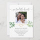 Célébrez votre bonheur éternel avec cette élégante invitation de réception de mariage botanique. Avec une photo personnalisée des jeunes mariés, une verdure délicate à l'aquarelle et un cœur en corde dorée romantique, ce design est parfait pour les réceptions après une fugue, les mariages de destination ou les rassemblements intimes. La mise en page moderne avec des polices de caractères classiques et serif ajoute du charme et de la chaleur à votre annonce spéciale. Entièrement personnalisable avec les noms, les détails de l'événement et le lieu.