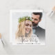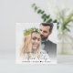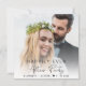 Faire-part de mariage ou d'élopement moderne et invitation à une réception pour informer la famille et les amis que vous vous êtes mariés lors d'une petite cérémonie intime, et les inviter maintenant à une réception de mariage. Le recto présente votre photo de mariage avec en surimpression "Happily Ever After Party" dans un mélange de typographie simple et d'écriture élégante. Sous votre photo, ajoutez vos prénoms et la date de votre mariage. Au verso, vous pouvez personnaliser votre message avec plus de détails et ajouter les détails de la fête ou de la réception et vos noms dans une écriture qui ressemble à une signature.