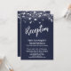 Sur un fond marine qui peut être changé en n'importe quelle couleur de votre choix, j'ai placé une texture de papier rustique transparente et subtile qui ajoute de la profondeur et de l'intérêt au papier. Dans une police de caractères moderne et décontractée, j'ai créé un graphique pour le mot "Réception". Tous les autres textes sont entièrement modifiables ; n'hésitez pas à utiliser les champs de modèle pour ajouter vos informations et cliquer pour personnaliser davantage si vous devez redimensionner, repositionner ou même changer cette police. Le haut du design est accentué par plusieurs graphiques différents représentant une variété de styles de lumières brillantes scintillantes ajoutant une ambiance amusante et festive pour votre occasion spéciale. N'hésitez pas à nous contacter si vous avez des demandes spéciales ou si vous avez besoin d'aide pour la personnalisation. // 105 //