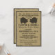 Cartons d'invitation de style rustique campagne pour une réception de mariage décontractée de style barbecue. Silhouettes de cochons bruns sur toile de jute, carton d'invitation entièrement imprimé.