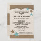 Invitation de style rustique de campagne à une réception de mariage décontractée de style barbecue. Conception inspirée des étoiles occidentales et du cuir dans des tons marrons chauds et bleus aqua.