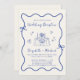Invitation Réception de mariage bleu crème fantaisiste dessin