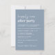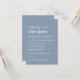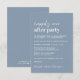 Invitation bleu poussiéreux minimaliste moderne pour une réception après votre événement ou mariage privé avec "Happily Ever After Party" dans un mélange d'un script blanc contemporain et de lettres blanches audacieuses, votre invitation personnalisée, et vos noms dans un script signature.