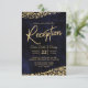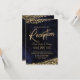 Invitation Réception de mariage bleu marine aquarelle et or