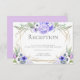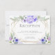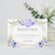 RÉCEPTION DE MARIAGE | Formes géométriques dorées avec feuilles d'eucalyptus, anémones lilas et violettes et fleurs d'hortensia - un cadre de style terrarium géométrique doré multifacettes orné de feuilles aquarelles et de bouquets floraux. Le verso est d'une couleur coordonnée complémentaire. Personnalisez le texte, le style de police, la couleur et la taille. Cela fait partie d'une suite de papeterie de mariage complète avec papeterie de mariage, de baby shower et d'autres événements correspondants.
