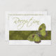 Une carte de réception pour confirmer les choix de repas, y compris l'option "diététique pour diabétiques". Cette liste est personnalisable. Le design fait partie de la collection "Brocade Papillon" pour les mariages en vert fougère. Quatre autres coloris de tons de bijoux seront disponibles : paon, violet, rouge et un beau vert fougère. Le fond est un motif de brocart complexe, il n'est pas en relief, il sera imprimé à plat. Les papillons ont l'apparence de vitraux et ne sont pas non plus en relief. La couleur et la section blanche pour le texte sont dans le motif de brocart. Seront également disponibles des articles tels que des timbres, des numéros de table, des cartes de placement de table, des cartes de remerciement, des RSVP, des invitations de mariage, des cartes "save the date" ainsi que d'autres produits assortis.