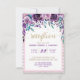 Cartes de réception de mariage à l'aquarelle avec fleurs violettes, champagne or et rayures confettis avec une police de script pinceau tendance ! ~Consultez ma boutique pour voir la suite de mariage complète pour ce design !