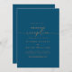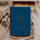 Cette invitation à la réception de mariage classique bleu marine est parfaite pour une soirée post-elopement moderne. Le design sobre et élégant présente une typographie de script chic et sophistiquée en or brûlé. Les cartes RSVP sont vendues séparément, ou vous pouvez les détails RSVP à l'arrière ou au bas de la carte.