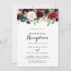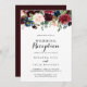 Cette invitation de réception de mariage de calligraphie moderne rustique d'automne est parfaite pour une simple fête après l'élopement. Le design présente des fleurs peintes à la main radieuses et gracieuses de couleur bordeaux, rouge, marine, bleue et rose, inspirant la beauté naturelle.