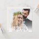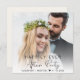 Elément moderne crème légère ou petite faire-part mariage et accueil. Le devant présente votre photo de jour de mariage superposée avec "Happily Ever After Party" dans un mélange de typographie simple et d'un script chic. Sous votre photo, ajoutez vos prénoms et votre date de mariage. Au verso, personnalisez votre message, ajoutez des détails de réception ou de partie et ajoutez vos noms dans un script de type signature.