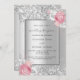 Faux arrière - plan d'aspect argent décoré de fleurs rose et blanche, fleurs et parties scintillant faux argent, scintille. Personnalisez et ajoutez vos noms et les détails du mariage. Lettres noires.
