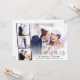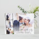 Faire-part de mariage ou d'annonce de mariage privé élégant avec une photo de votre jour de mariage superposée d'une bande de trois photos carrées plus petites et "Célébrez avec nous" dans un script moderne. Ajoutez vos prénoms, date de mariage et lieu en typographie simple. Au verso, personnalisez votre annonce de mariage et votre invitation à la réception et ajoutez vos noms dans un script ressemblant à une signature.