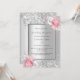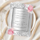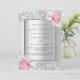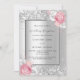 Faux arrière - plan d'aspect argent décoré de fleurs rose et blanche, fleurs et parties scintillant faux argent, scintille. Personnalisez et ajoutez vos noms et les détails du mariage. Lettres noires.