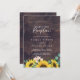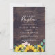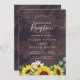 Cette invitation de réception de mariage en bois de eucalyptus au tournesol rustique est parfaite pour une fête de campagne après un mariage en fuite. Le design floral bohème présente des tournesols jaunes, des fleurs roses tendres et de la verdure d'eucalyptus de couleur verte chasseresse en aquarelle avec une touche moderne élégante. Les cartes de réponse sont vendues séparément, ou vous pouvez ajouter les informations de réponse au verso de la carte.
