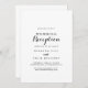 Cette invitation de réception de mariage en calligraphie moderne est parfaite pour une fête rustique après un mariage en fuite. Le design simple et élégant présente une typographie script classique et fantaisie en noir et blanc. Les cartes de réponse RSVP sont vendues séparément, ou vous pouvez ajouter les détails RSVP au verso ou en bas de la carte.