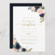 Cette invitation à la réception de mariage bleu marine à fleurs d'or est parfaite pour une soirée post-elopement rustique. Le design se compose de belles peintes à la main bleu foncé, bleu, bleu marine, rose, rousse, fleurs dorées et feuillage vert. Les cartes RSVP sont vendues séparément, ou vous pouvez les détails RSVP à l'arrière ou au bas de la carte.