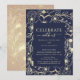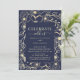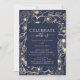 Invitation Réception de mariage floral bleu marine et or
