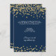 Conception élégante de réception de mariage (réception uniquement) avec motif Navy Blue de paillettes de confettis en faux or, noms personnalisés et texte de date. Impressionnez votre famille et vos amis avec ce design stylé et moderne.