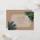 Une invitation de réception de mariage présentant des succulentes dans les coins supérieur droit et inférieur gauche. Personnalisez le texte du centre de design géométrique. Le fond et le verso sont inspirés de papier carton.