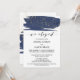 Cette carte d'invitation de réception de mariage intime aquarelle bleu marine et or est parfaite pour une fête de mariage intime élégante. Ce design abstrait de nuit étoilée présente un pinceau dramatique d'aquarelle bleu marine surmonté d'un beau faux éclat doré. Les cartes de RSVP sont vendues séparément.