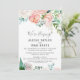 Cette carte de réception de mariage intime avec des fleurs de pivoine romantiques est parfaite pour une fête post-mariage élégante. Le design floral présente des fleurs aquarelles cascades roses saumon, pêche et blanches. Les cartes RSVP sont vendues séparément.