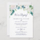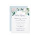 Cette carte de réception de mariage intime aux fleurs blanches classiques est parfaite pour une fête post-mariage printanière. Le design floral élégant présente des roses, des pivoines et des chrysanthèmes ivoire et blancs doux, avec des touches de fleurs de peinture aquarelle bleue pervenche et du feuillage vert. Les cartes de RSVP sont vendues séparément.