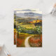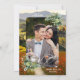 Une réception de mariage romantique uniquement, carte de remerciement ou invitation après mariage avec une peinture artistique d'un paysage inspiré de l'Italie. Le dos montre votre photo préférée (de mariage) avec du feuillage à l'aquarelle.