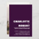 Invitation vos amis et proches avec cet élégant mulberry minimaliste avec une invitation de mariage en texte blanc avec une photo des jeunes mariés sur le dos pour partager votre joie dans votre mariage récent. Pour de meilleurs résultats ajustant votre image choisie pour le dos de l'invitation rogner il à un ratio 5 x 7.