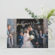 Invitation de réception de mariage / évasion moderne avec un design simple avec "juste mariés" dans un script manuscrit élégant avec des fioritures ainsi que vos noms et date de mariage sur votre photo préférée. Le dos contient les détails de votre réception. Cette invitation de réception uniquement est parfaite pour un couple déjà marié qui souhaite célébrer avec sa famille et ses amis après s'être enfui.