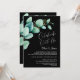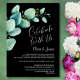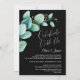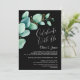 Invitez vos amis et vos proches à votre réception post-mariage avec cette invitation noire aux feuilles d'eucalyptus vertes aquarelle pour célébrer votre mariage récent.