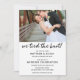 Annoncez à vos amis et à votre famille que vous êtes mariés ! Et puis invitez-les à célébrer votre réception de mariage. "nous avons fait un nœud !" en écriture moderne. Personnalisez avec votre photo et les informations détaillées pour une célébration post-mariage