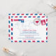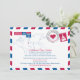 Une réception de mariage post-fête amusante et créative à envoyer à tous vos invités pour annoncer votre mariage de destination. Un design de lettre postale aérienne en rouge et bleu. Si vous avez un autre lieu, veuillez me le faire savoir et je mettrai en place un modèle pour cet endroit. Envoyez un email à paula@labellarue.com N'OUBLIEZ PAS DE CHOISIR VOTRE CARTON PRÉFÉRÉ POUR L'IMPRESSION.