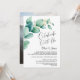 Invitez vos amis et proches à votre réception de mariage avec cette invitation aquarelle aux feuilles d'eucalyptus vertes présentant une image du couple heureux au verso pour célébrer votre récent mariage.
