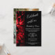 Une invitation moderne personnalisée de célébration de mariage après la cérémonie avec des fleurs rouges et noires.