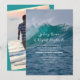 Faire-part de mariage privé avec texte d'invitation à la réception inclus. Des vagues qui se brisent et de l'eau de mer verte constituent l'arrière-plan d'un texte imprimé en blanc dans un style de police décontracté. Incluez les noms du couple et annoncez qu'ils sont désormais « M. et Mme », puis utilisez le modèle de paragraphe pour informer tout le monde de la date et du lieu de la cérémonie et les inviter à une fête spéciale pour les jeunes mariés. La formulation peut être établie comme vous le souhaitez, avec les jeunes mariés qui invitent, ou quelqu'un d'autre qui invite. Le verso est d'une couleur verte marine unie. Choisissez n'importe quelle taille qui convient au libellé, et améliorez-la avec du papier spécialisé selon vos préférences.