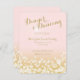 Carte d'information ou de réception de mariage élégante de ton rose poudré et or avec des points scintillants pour un gala étincelant.