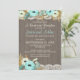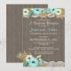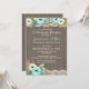 Invitation de réception de mariage rustique au barbecue avec floral sarcelle, bois de grange et dentelle pour un barbecue de mariage ou une réception décontractée.